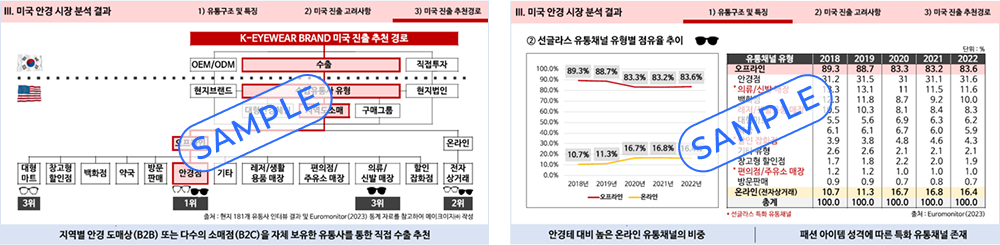 제품군별 현지 유통 채널의 현황 및 특징을 파악하여 판매 채널 확장 계획을 수립 할 수 있습니다.