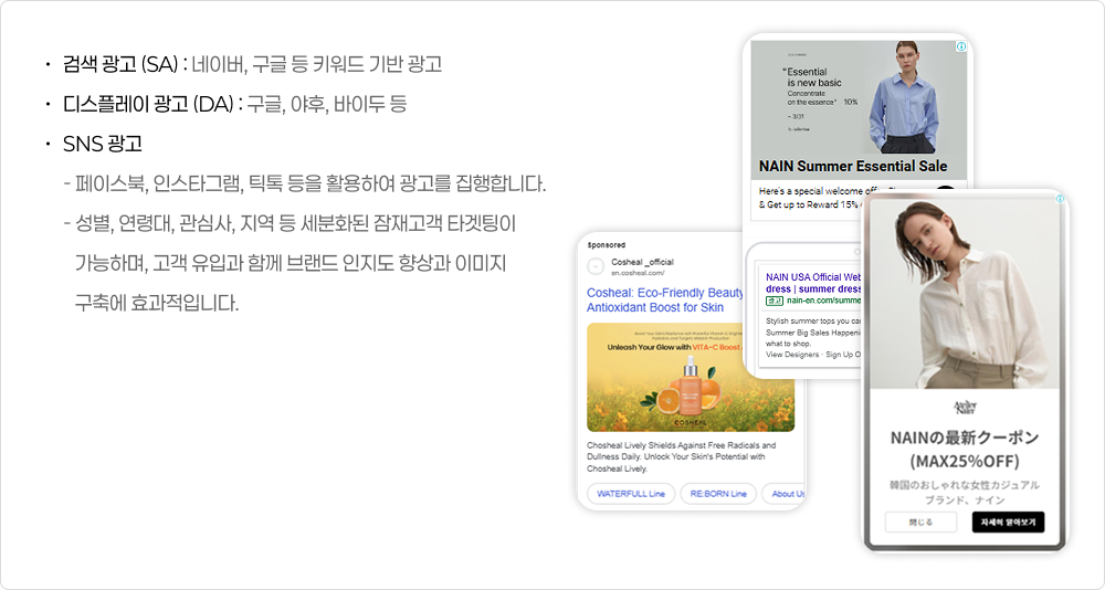 “현지 문화+디지털 성과” 전략적 접근을 통해 데이터를 기반으로 광고의 효과를 극대화하고, 구매 전환율을 상승 시킵니다.