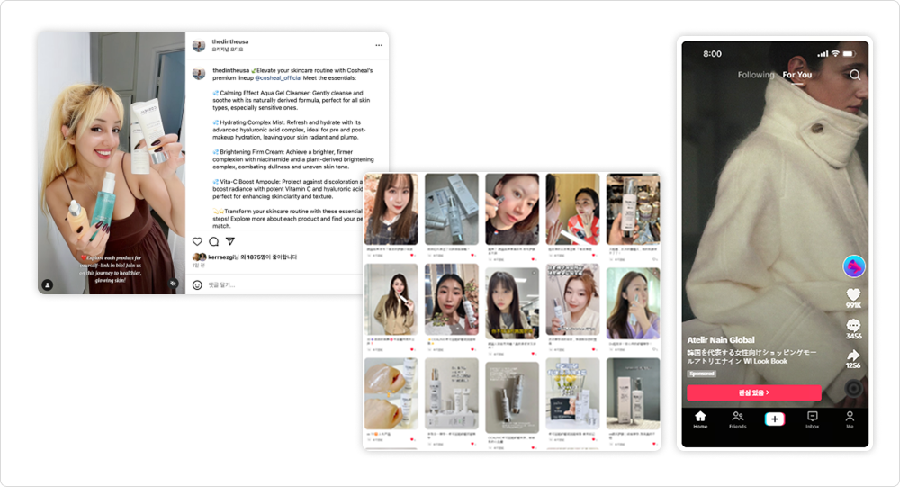 시딩을 통한 인플루언서 광고 지원/ 인플루언서 사용 후기 및 라이프 스타일 콘텐츠를 생성하며, 바이럴 효과 및 브랜드 인지 확산에 효과적입니다.