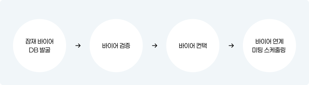 판매 중인 상품군에 적절한 잠재 바이어 DB 발굴부터 바이어 검증, 컨택까지 모두 지원해드립니다.